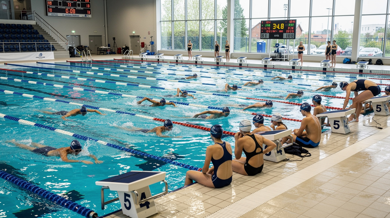 Intermediate/advanced swim clinic for competitive swimmers. Prerequisite: swim 50 yards nonstop with flip turn and basic skill in all four competitive strokes. Weekdays July 20–31, 8:55–10:15 AM.